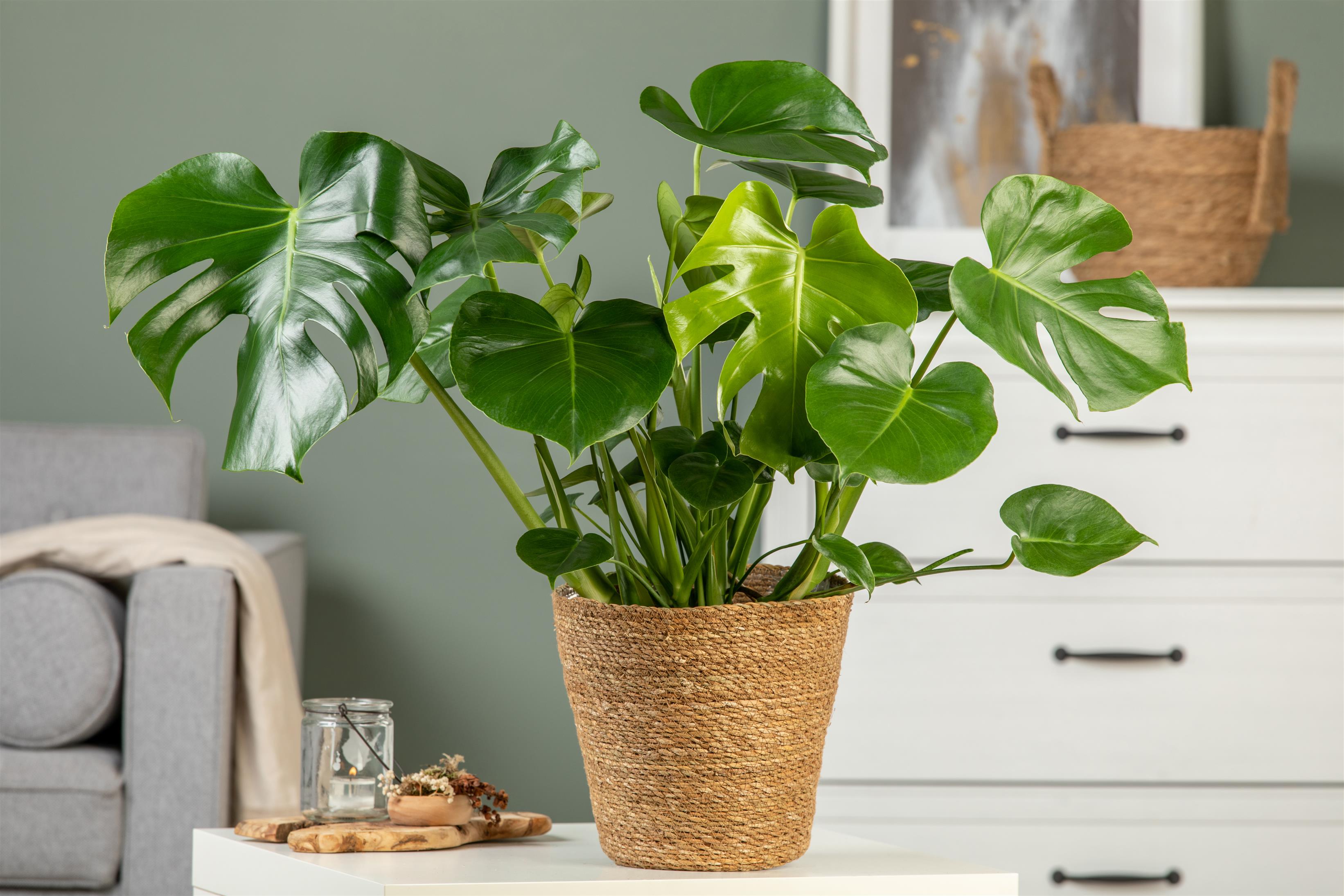 De Monstera zorgt voor rust en een fijne sfeer in huis. Het groen om je heen helpt stress te verminderen en draagt bij aan een prettig binnenklimaat. De plant dankt zijn naam ‘gatenplant’ aan de karakteristieke bladeren met openingen. Zet hem op een lichte plek met indirect zonlicht en draai hem af en toe, zodat hij mooi vol blijft groeien. Geef regelmatig water en laat de grond licht opdrogen. In het voorjaar tot de nazomer geef je eens per twee weken voeding. Verpot de plant bij voorkeur in het voorjaar.